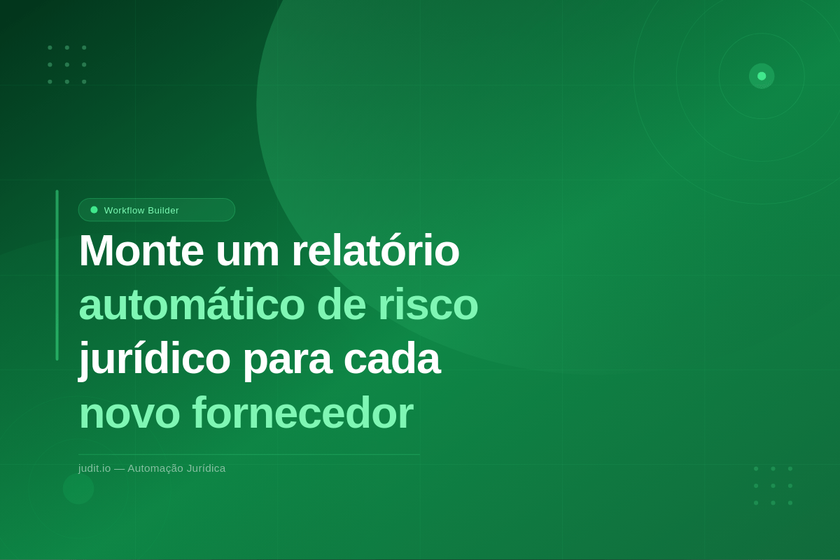 O time de compras cadastra um novo fornecedor. O contrato é assinado. Três meses depois, descobre-se que a empresa tinha uma execução fiscal milionária, histórico de processos trabalhistas e o sócio estava com o CPF bloqueado.